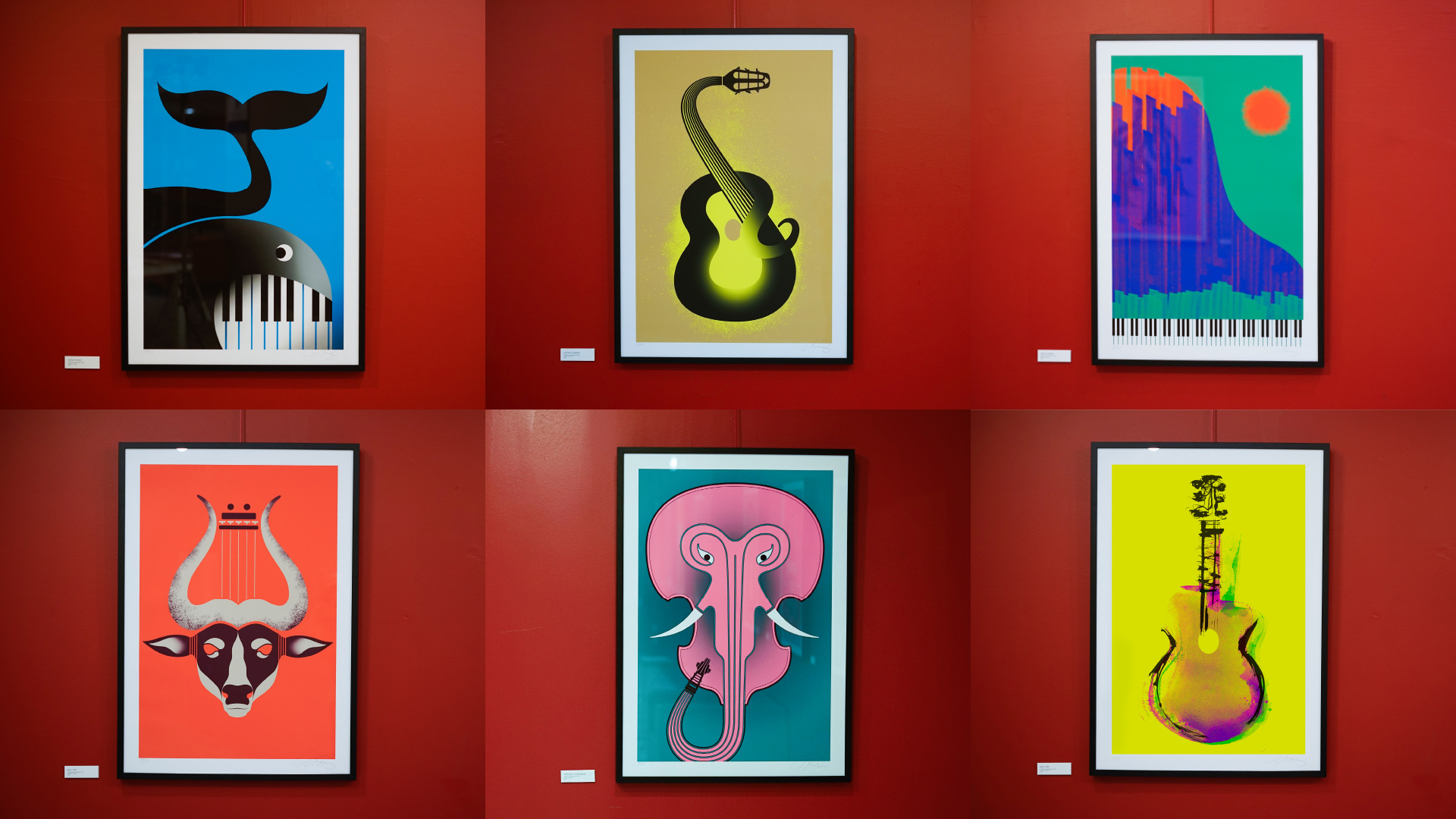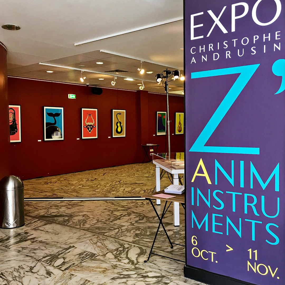 Surgis de l’imaginaire de Christophe Andrusin, baleine-piano, cobra-guitare, éléphant-contrebasse transforment peu à peu les affiches de festivals, de concerts, et les couvertures d’albums en d’incroyables instruments zoomorphes. Les couleurs claquent et les matières vibrent, comme des ondes sonores. La pieuvre-trompettes, créée pour l’affiche Jazz à Clamart de 2015, avait marqué l’esprit du festival. Pour l’édition 2018, la ville de Clamart fait de nouveau appel à Christophe Andrusin et décide d’acquérir une série de 9 illustrations en édition limitée. L’artiste signe une nouvelle affiche : des girafes-clarinettes emblématiques des concerts à venir et pour l’occasion, une exposition est organisée dans le cadre du festival à partir du 6 octobre.