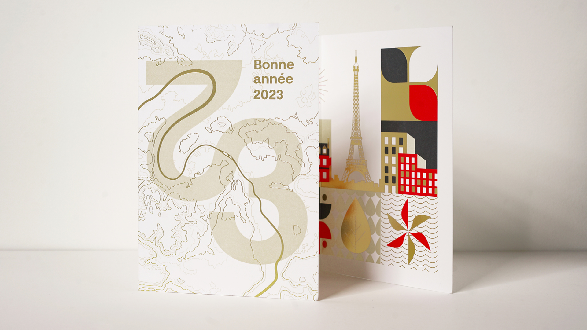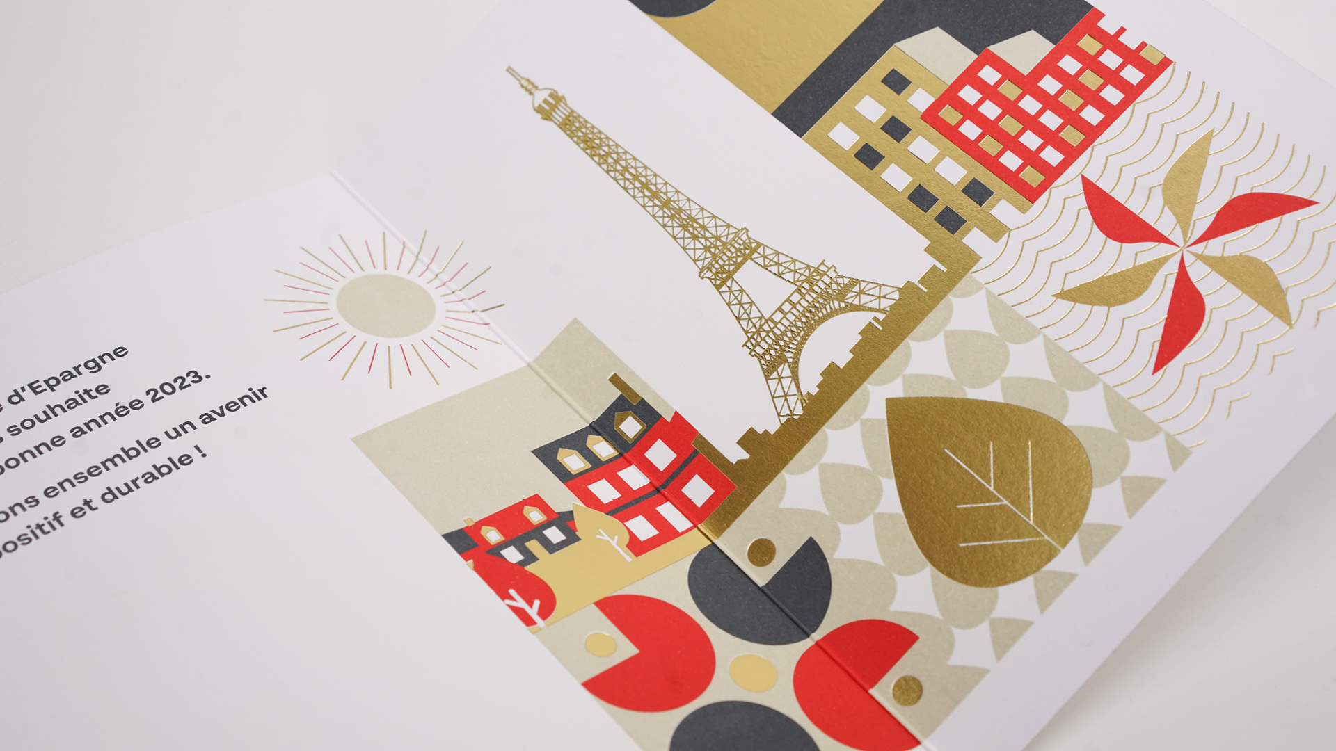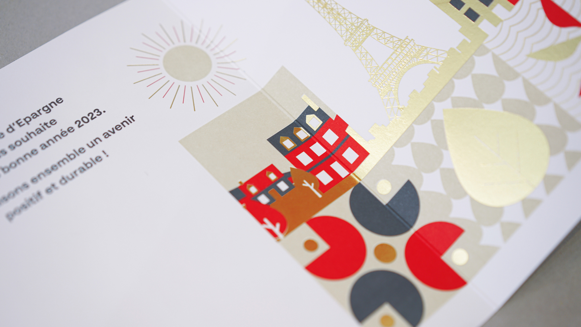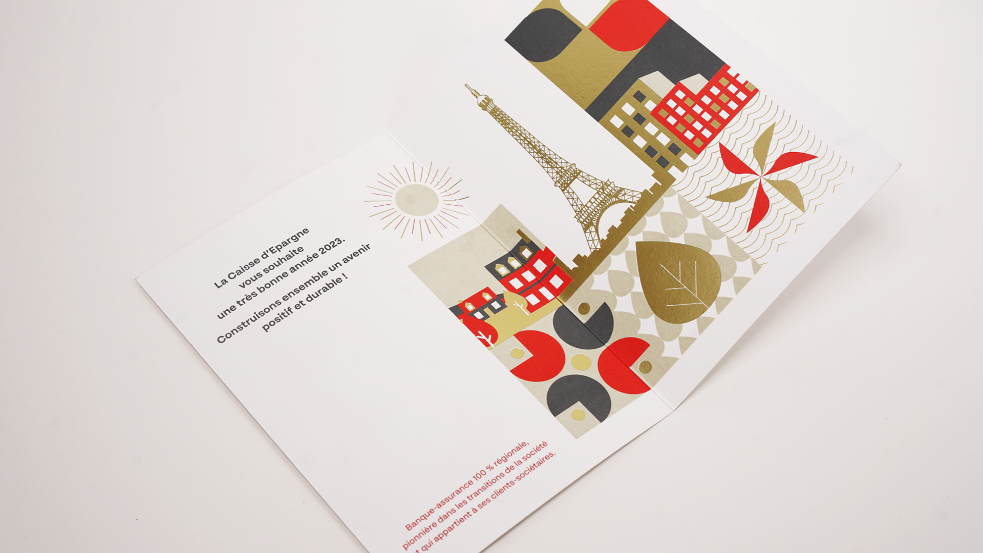 Conception et design graphique de la carte de vœux 2023 pour la Caisse d’Epargne Île-de-France et la banque privée