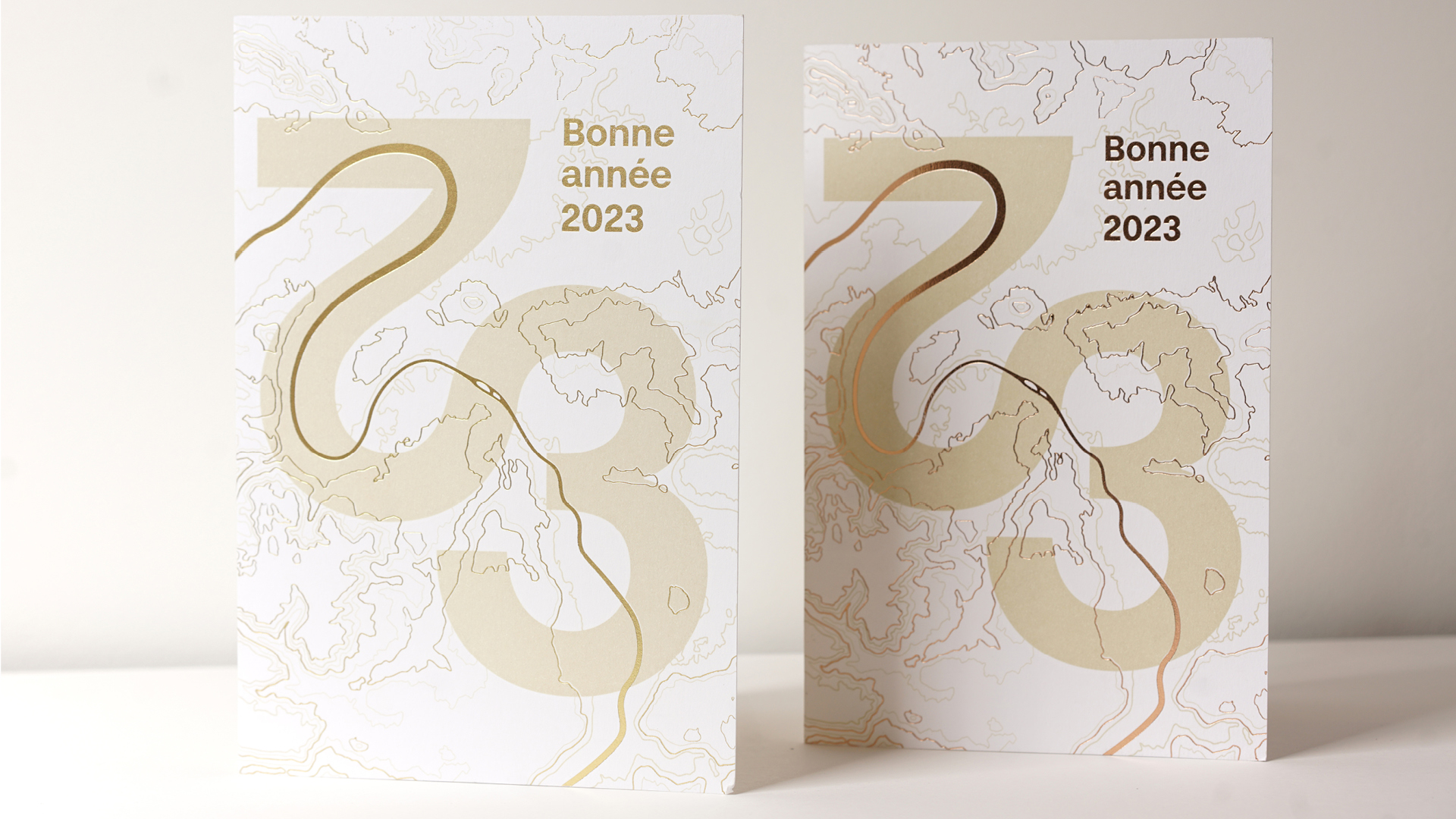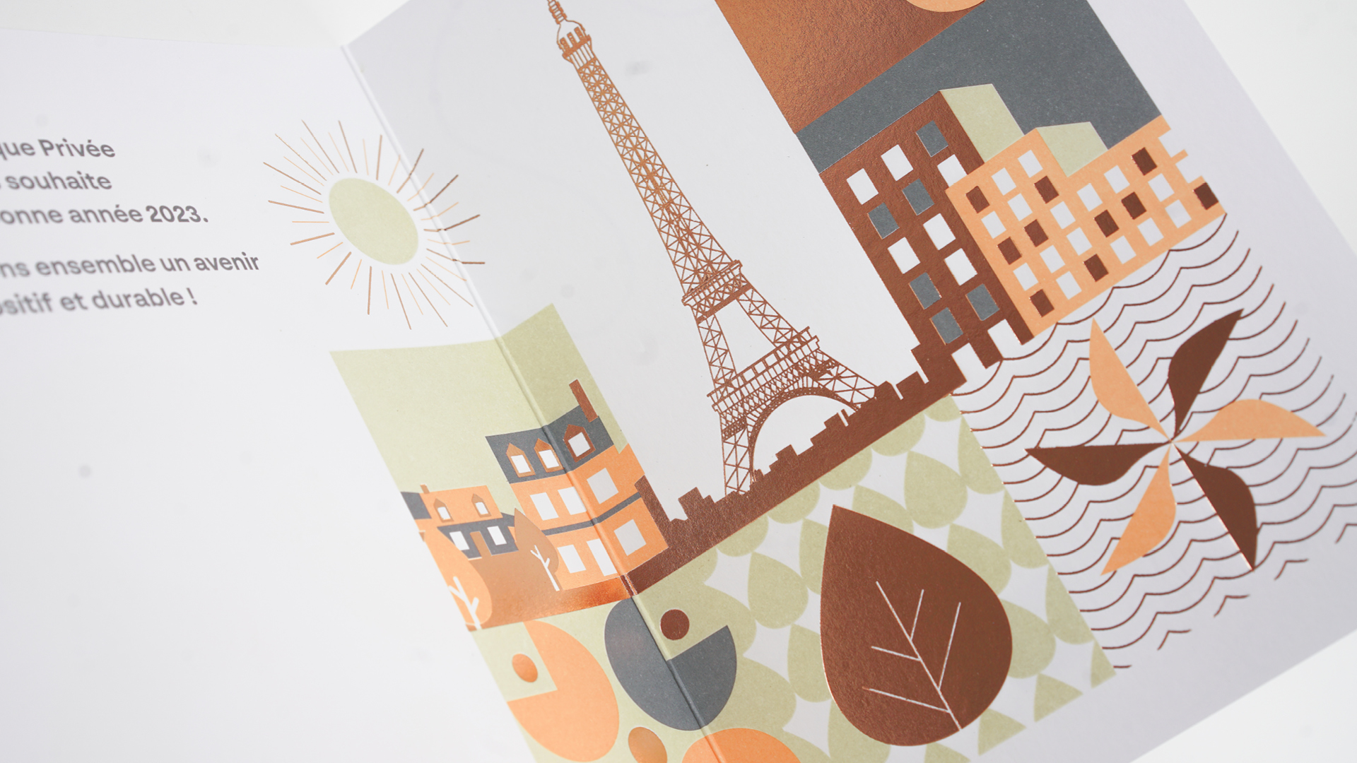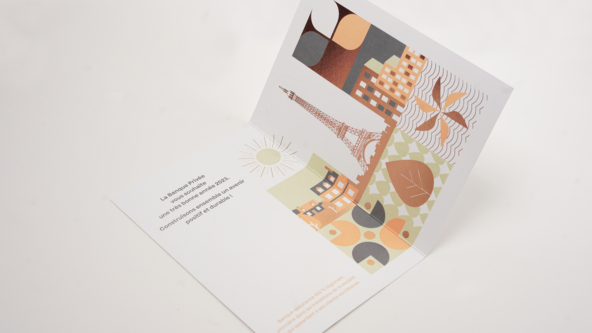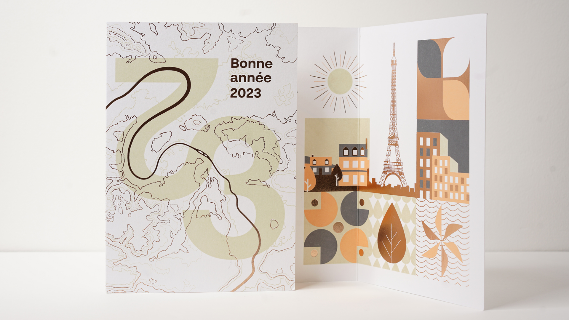Conception et design graphique de la carte de vœux 2023 pour la Caisse d’Epargne Île-de-France et la banque privée