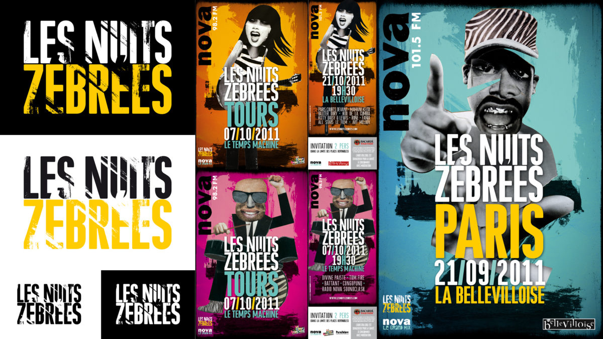 Identité visuelle pour les Nuits Zébrées concerts gratuits de la radio Nova.
