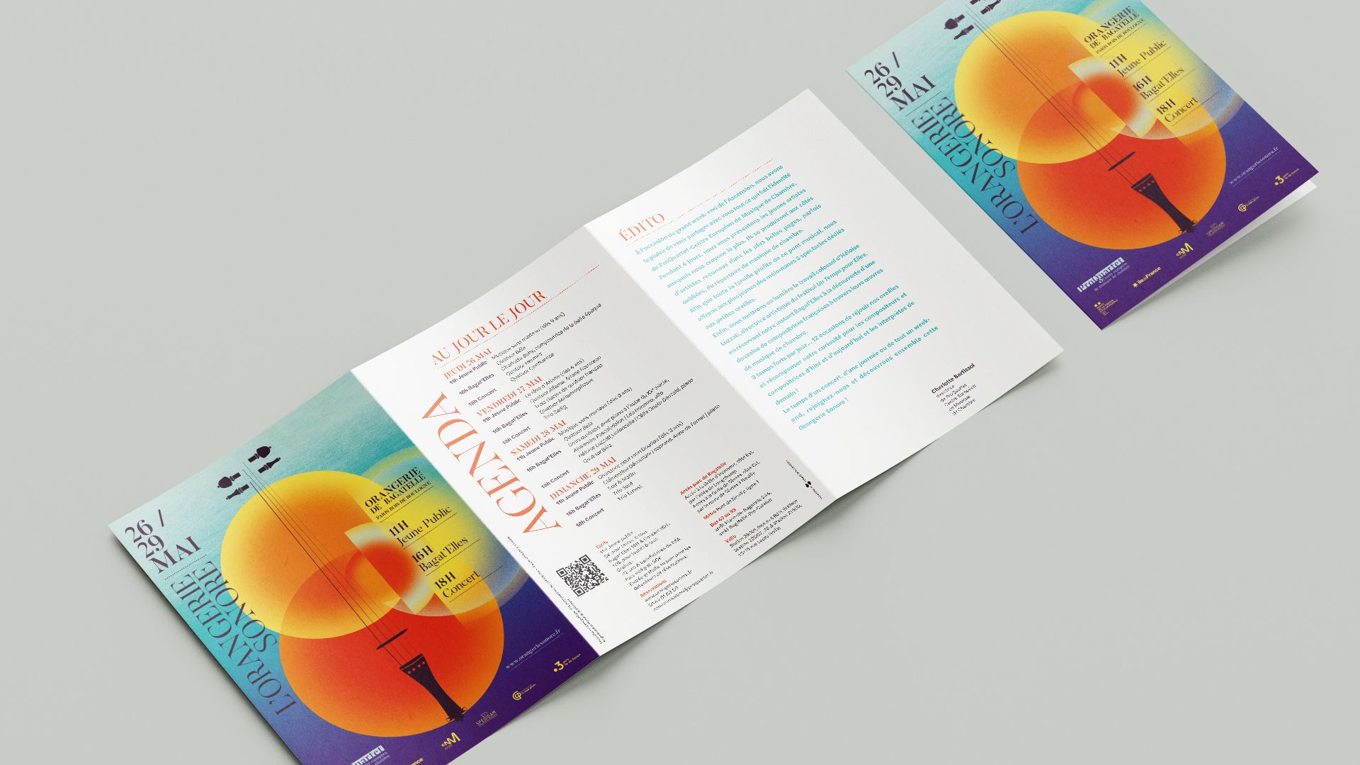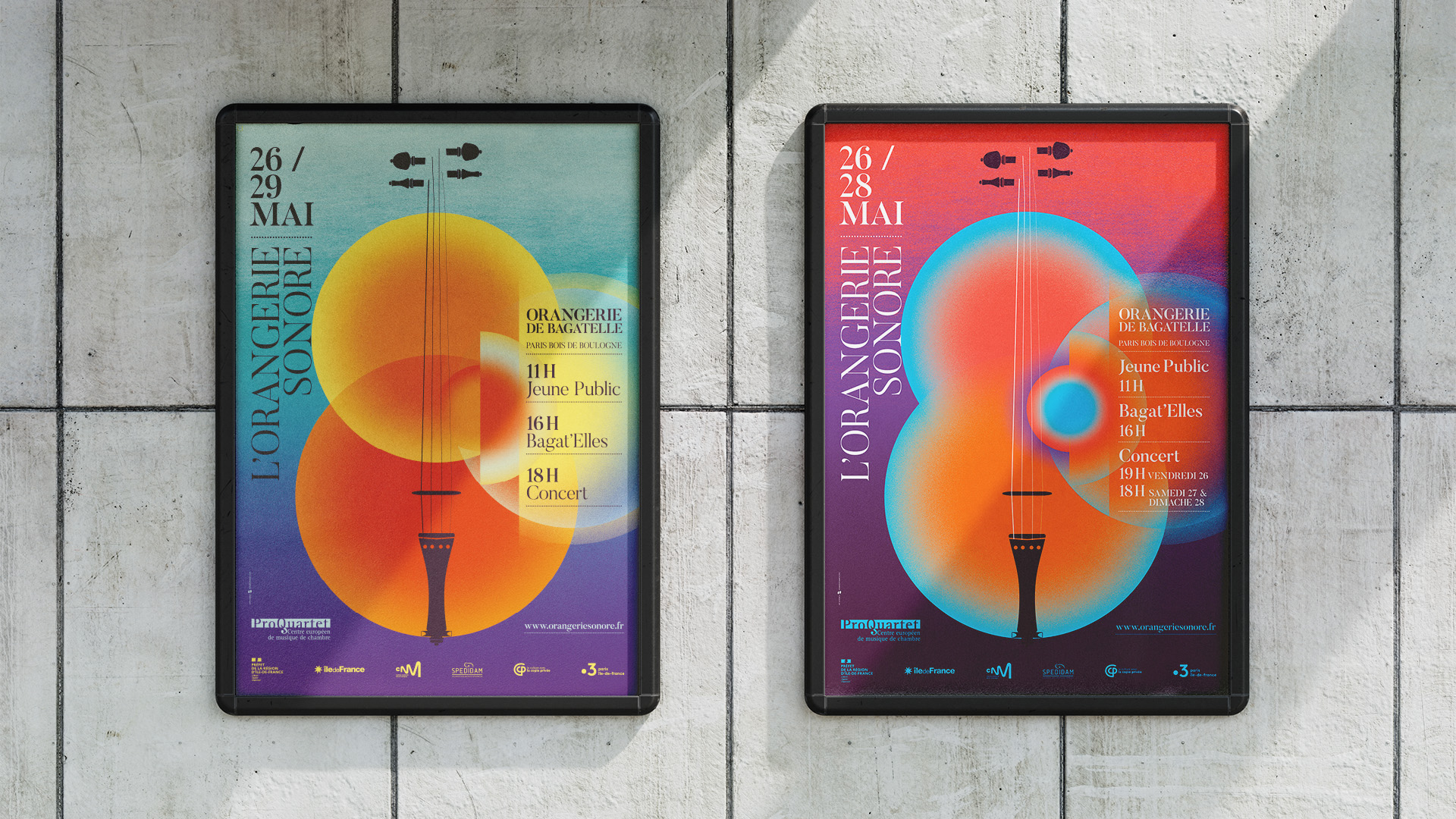 Design graphique des affiches des festivals L’Orangerie Sonore & Rencontres Musicales et proposition d’identité visuelle pour ProQuartet centre européen de musique de chambre